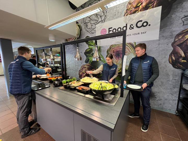 Aamupäivän tietopaketin jälkeen meillä on nälkä! Ensimmäinen lounas on työpaikan lounasravintolassa kaikkien kesätyöntekijöiden kanssa, jotta voimme tutustua toisiimme paremmin, jakaa ensivaikutelmia ja... syödä hyvää ruokaa! Samu on jo neljättä kertaa kesätyöntekijänä, joten hänellä on paljon vinkkejä ja niksejä jaettavana pöydän ääressä istuville uusille tulokkaille. Lounaan jälkeen kaikkien on aika tutustua omaan osastoon ja tavata oma esihenkilö ja tiimin jäsenet. Esihenkilö kertoo työtehtävistä ja vastaa ensimmäisiin osastoon liittyviin kysymyksiin.